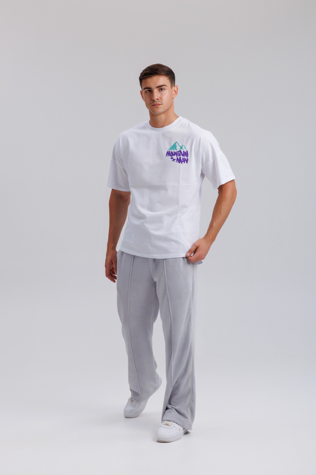- Базовый белый цвет — легко сочетается с любой одеждой, уместен в повседневном и уличном стиле