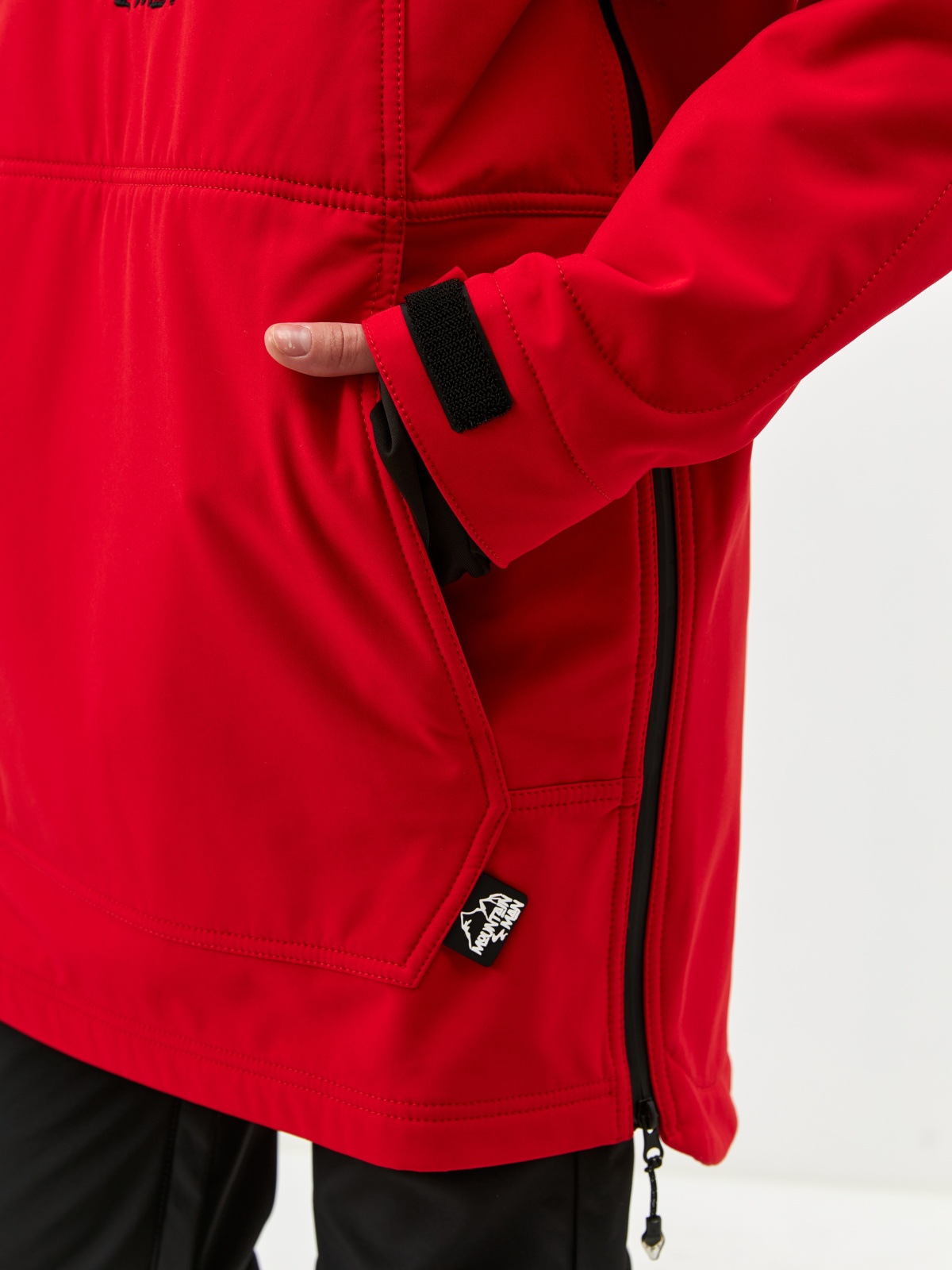 • Карман для ski-pass на рукаве, нагрудный карман и большой карман-кенгуру — всё на влагостойких молниях.