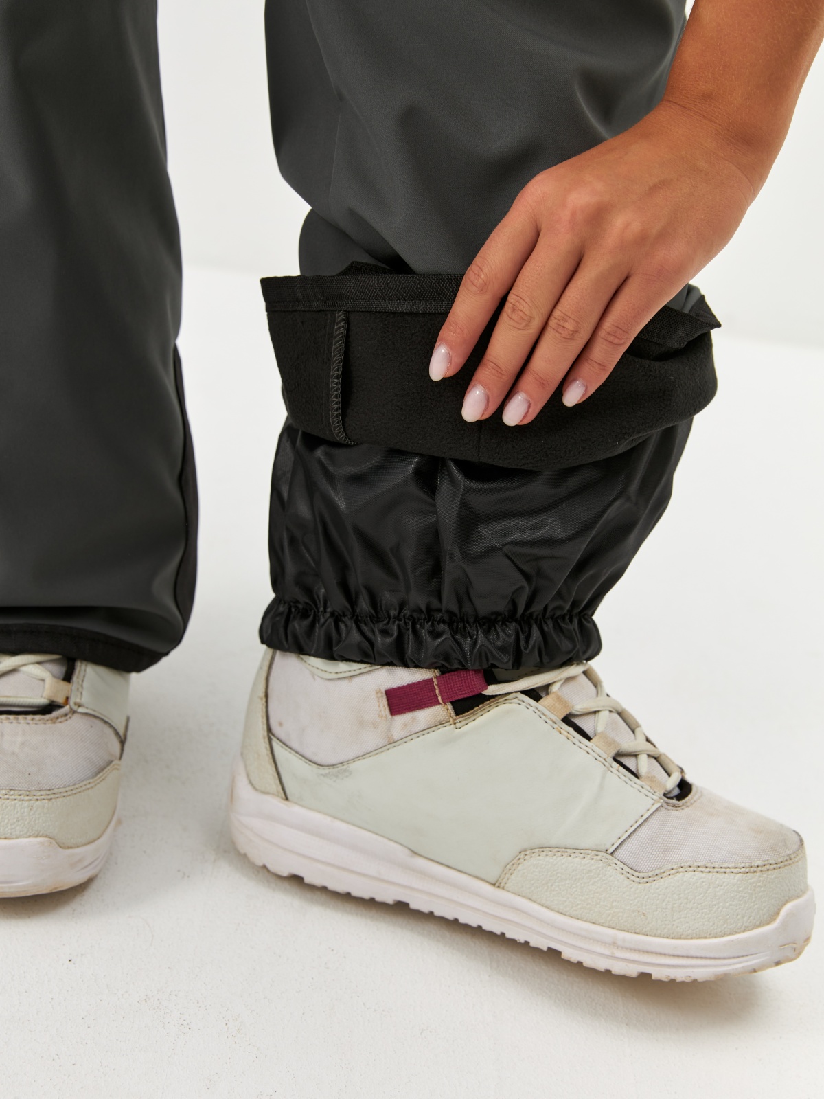 • Эластичные снегозащитные гетры с силиконовой лентой — сохраняют сухость внутри и фиксируются на ботинках.